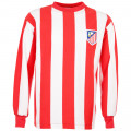 La maglietta retro dell'Atletico Madrid sfoggiata negli anni 60, decennio pieno di soddisfazioni per i colchoneros.