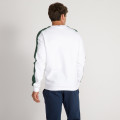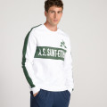 Felpa ufficiale Le Coq Sportif dell'AS Saint-Etienne, bianca con fascia verde nella parte anteriore. Il pezzo è fabbricato in Marocco e rifinito in Francia con un tessuto double-face da 300 g in cotone/poliestere. ll taglio è Regular Fit, piacevole da indossare. I loghi "SAINT ETIENNE" e "Le Coq" sono stampati sul petto.