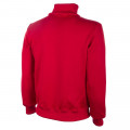 Giubbino vintage anni 70 della Danimarca, rosso con la bandiera ricamata. Hanno vestito questa felpa retro il pallone d’oro Allan Simonsen e il gran Morten Olsen, símbolo del calcio danese.