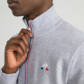 Felpa con cerniera lampo Le Coq Sportif, colore grigio con bordino della cerniera blu e rosso. Il pezzo è fabbricato in Marocco e rifinito in Francia con un tessuto double-face da 300 g in cotone/poliestere (85%-15%). ll taglio è Regular Fit, piacevole da indossare. Logo "Le Coq" trasferibile.