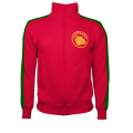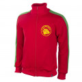 Felpa retro dello Zaire, rossa, inserti verdi, scudetto Tigers ricamato in giallo e “Zaire” stampato nella schiena. Felpa della mitica squadra del Mondiale del 1974 e della incredibile azione di Mwepu Ilunga, che calciò la palla credendo che la punizione fischiata fosse a suo favore (quando invece era contro). Giacca fabbricata in Europa con tecnologie moderne e artigianali. Unica e introvabile.