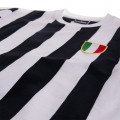 Maglia vintage bianconera della Juventus, con colletto rotondo, ripresa secondo la leggenda da quella del Notts County.  Nei primi anni 70 si vinsero subito due scudetti, sotto la guida del cecoslovacco Vycpalek.