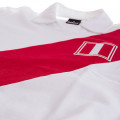 Classica divisa della Nazionale Peruviana, bianca con banda trasversale rossa. Gli anni 70 furono il loro miglior periodo, essendo stata la terza forza sudamericana dopo Brasile e Argentina. Alla straordinaria generazione contribuirono giocatori di classe mondiale come Teofilo Cubillas, Héctor Chumpitaz e Hugo Sotil, insieme a Cesar Cueto, Roberto Challe José Velásquez, Juan Carlos Oblitas. Nei Mondiali del 70 raggiunge il suo piazzamento importante, i quarti di finale: batte 3-2 la Bulgaria, 3-0 il Marocco per poi essere sconfitta nell'ininfluente match contro la Germania Ovest (3-1, triplo Muller). Ai quarti di finale si arrende contro il Brasile più forte di sempre: 4-2, gol di Rivelino, Tostao (2) e Jairzinho e di Gallardo e Cubillas (che terminò con 5 reti totali) per il Perù.