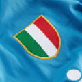 Maglia retro azzurra del Napoli, interamente in cotone di alta qualità, con il mitico sponsor Buitoni stampato nella parte anteriore, tricolore e coccarda nel petto, scudetto del Napoli cucito nella manica destra. Per i tifosi azzurri più intramontabili e per gli appassionati della storia del calcio italiano.