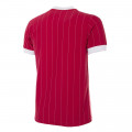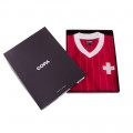 Maglia da calcio vintage della Svizzera: rossa, con righine bianche e il tipico stemma con la croce. 50% cotone e 50% poliestere. Made in Europe.