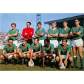 Maglia del Saint Etienne, della epoca d'oro dei verts, sotto la presidenza di Roger Rocher. Vinsero nove campionati, sei Coppe di Francia e arrivarono alla finale della Coppa dei Campioni 75-76, sconfitti dal Bayern Monaco.